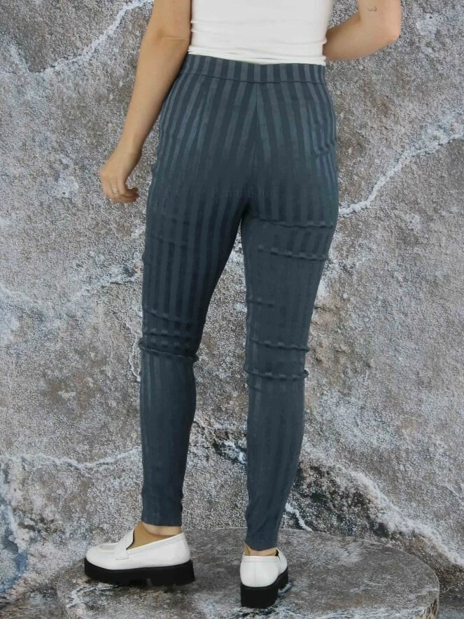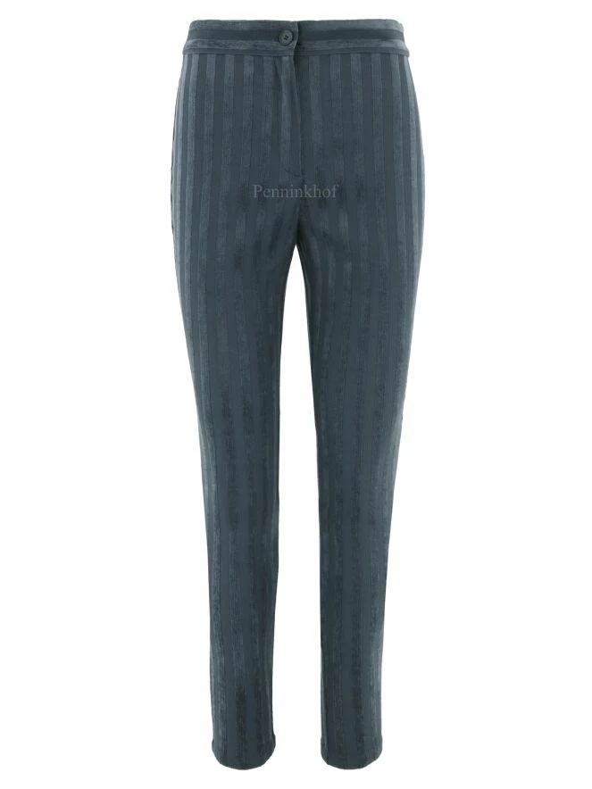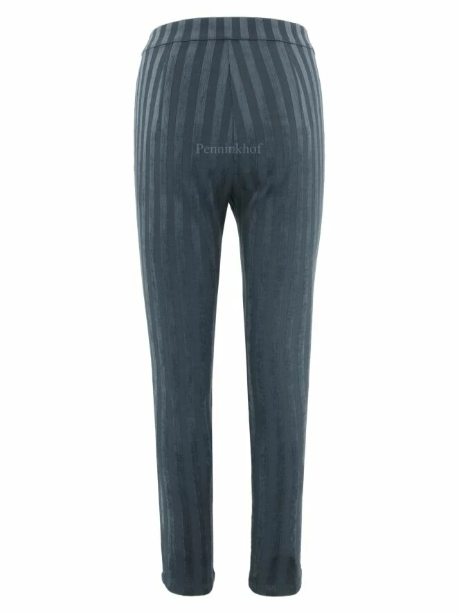 Pantalon de la marque Annette Görtz, à rayures verticales de couleur gris foncé, dans une alternance de mat et de brillant. Lavage à 30 degrés.