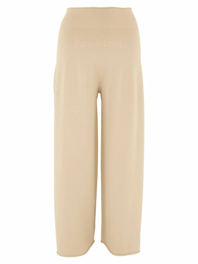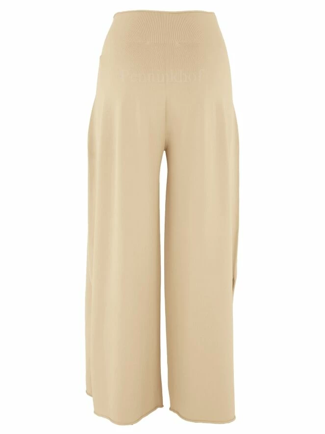 Pantalon large à taille haute en jersey de la marque Annette Görtz, de couleur vanille. Le pantalon présente de profondes échancrures sur les côtés à partir du mollet. Lavage à la main.
