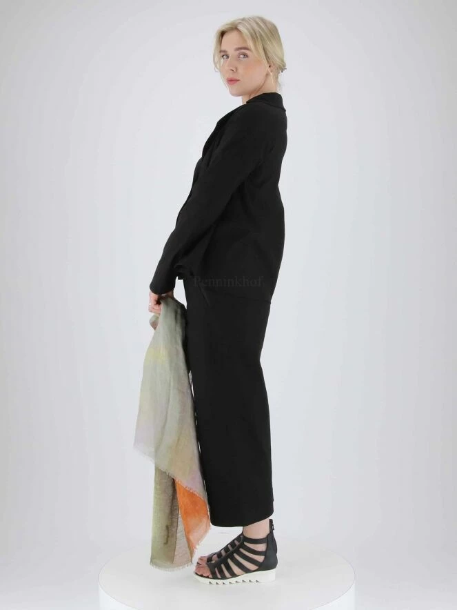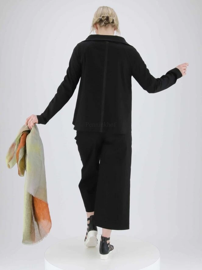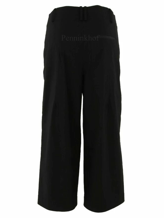 Pantalon court et large de la marque Annette Görtz, de couleur noir. Un passepoil noir orne le bord des poches latérales. Lavage à 30 degrés.
