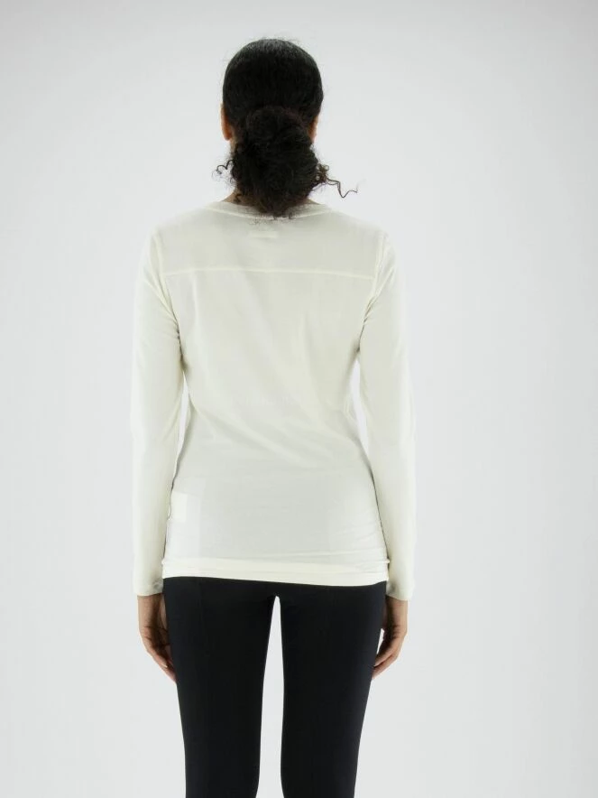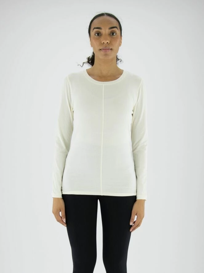 Une chemise d’Annette Görtz en blanc crème. Au centre de la T – shirt se trouve une couture sur le devant. La T – shirt a un col rond et peut être lavée à 30 degrés.