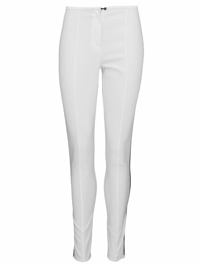Pantalon de couleur blanche sans poche, de la marque Annette Görtz. Les côtés arborent une large bande noire. Lavage à 30 degrés.