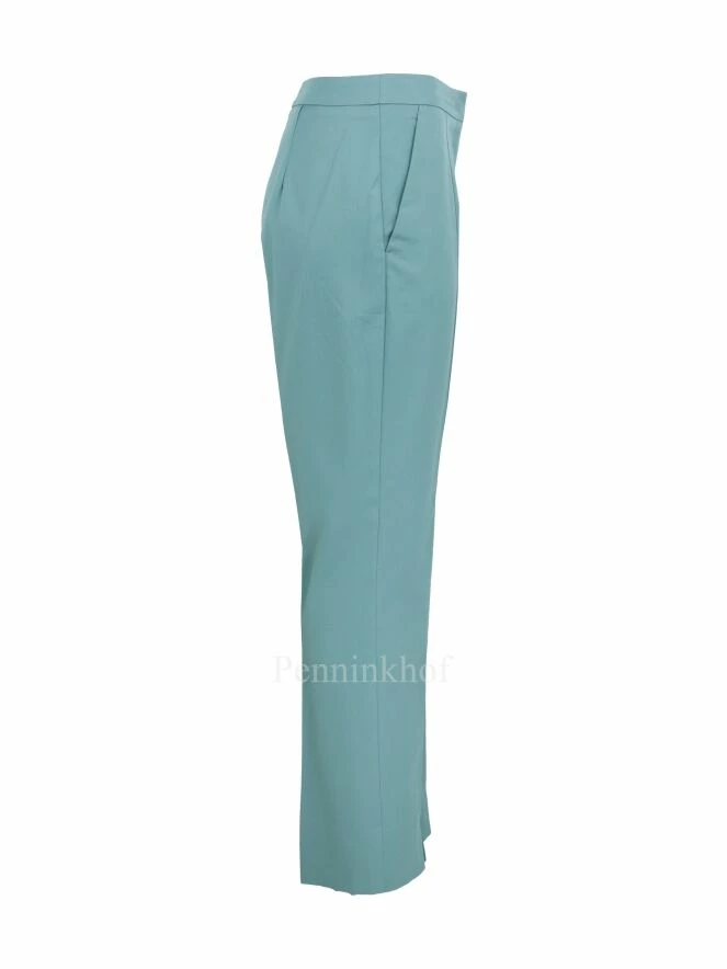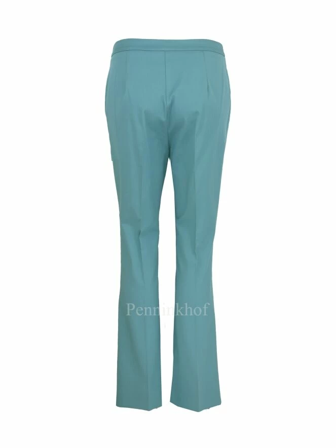 Pantalon de la marque Beatrice B., de couleur menthe foncée. Le bas des jambes légérement évasé, présente sur le devant une petite fente. Poches fendues latérales. Lavage à la main.