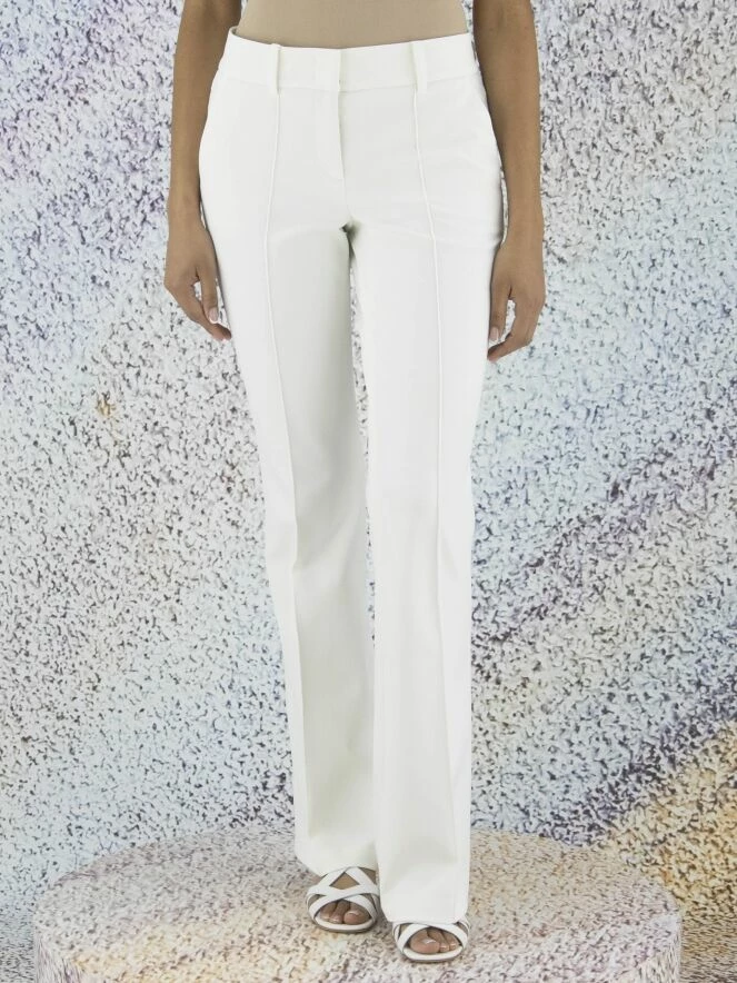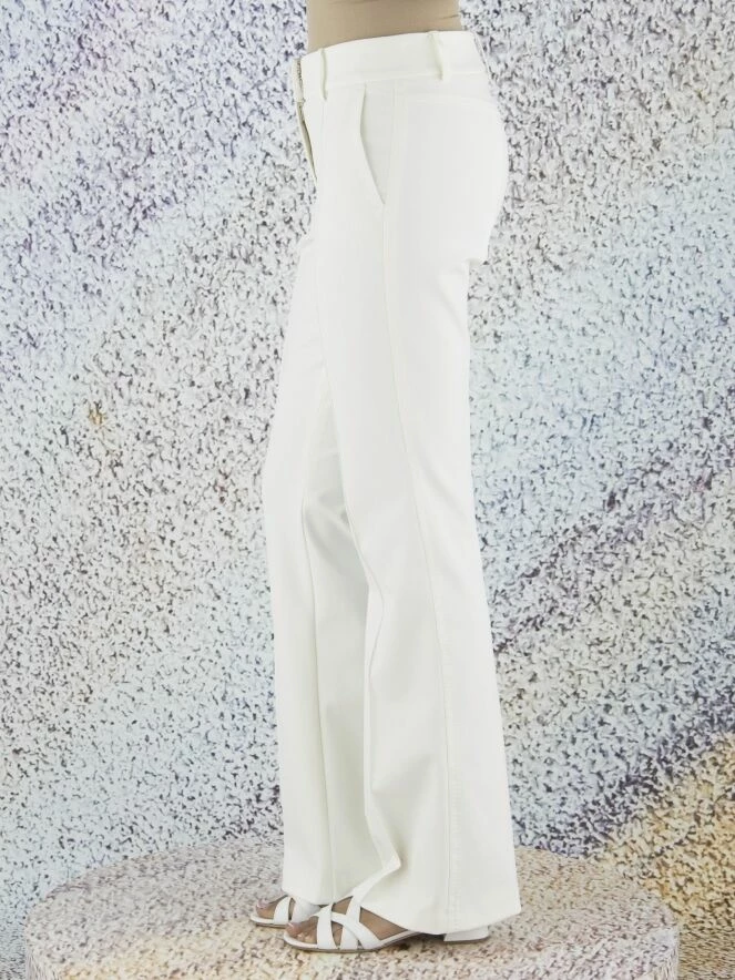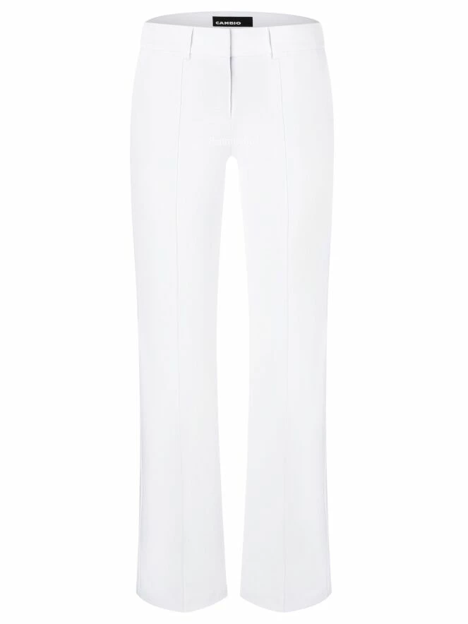 Pantalon Ă©vasĂ© de la marque Cambio, de couleur blanche. Les jambes sont ornĂ©es d’une couture centrale et d’une couture surpiquĂ©e sur les cĂ´tĂ©s. Le pantalon est dotĂ© de poches latĂ©rales. Lavage Ă 30 degrĂ©s.