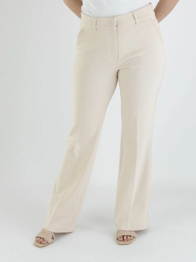 Pantalon de Cambio de couleur beige. Le long des jambes se trouve une couture décorative. Le pantalon a des poches latérales et peut être lavé à 30 degrés.