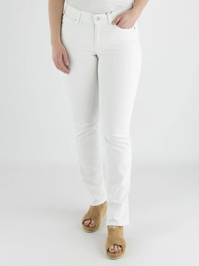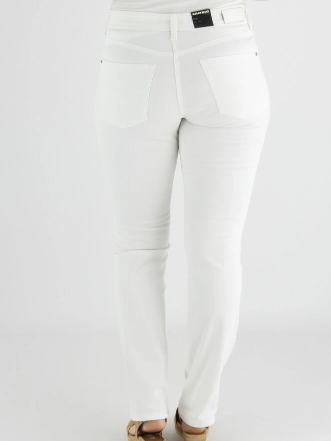 Jean classique de la marque Cambio, de couleur blanche. Modèle à 5 poches. Lavage à 30 degrés.