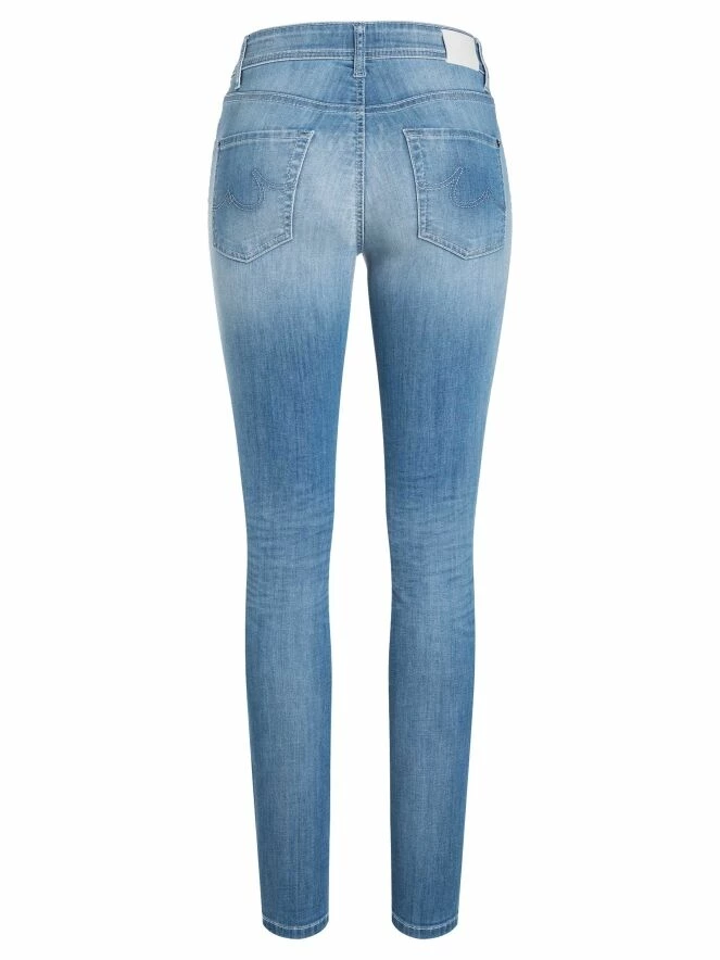 Jeans de la marque Cambio, de couleur bleu clair délavé. Modèle à 5 poches. Lavage à 30 degrés.