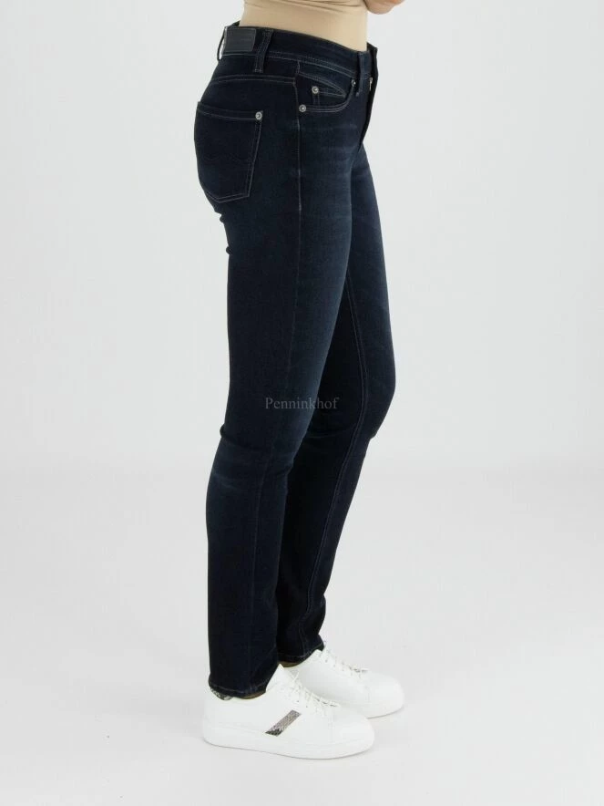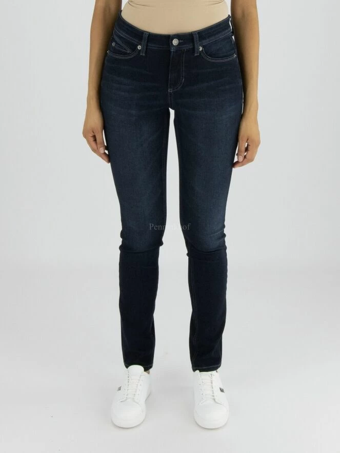 Jean délavé de couleur bleu foncé, de la marque Cambio. Modèle à 5 poches. Lavage à 30 degrés.