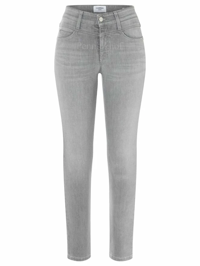 Jeans basique de la marque Cambio, de couleur gris clair. Modèle à 5 poches. Lavage à 30 degrés.