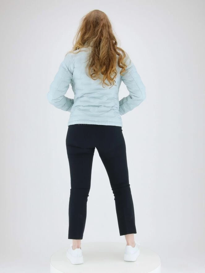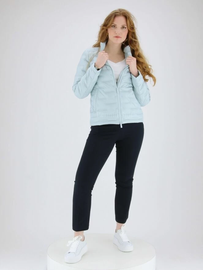 Blouson court à rayures matelassées de la marque Fuchs Schmitt, de couleur bleu clair. latérales avec zip de fermeture. Lavage à 30 degrés.