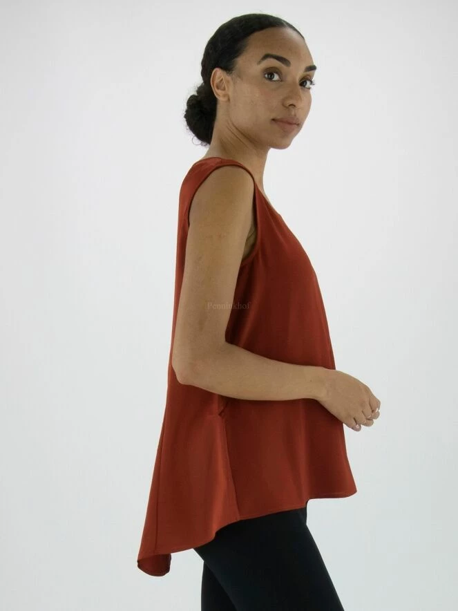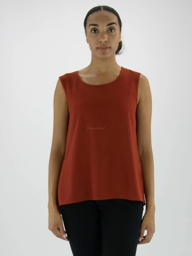 Un top de la marque High dans le coloris rouille. Le top est doté d’un col rond et d’une légère ligne A. Ce top peut être lavé à la main.
