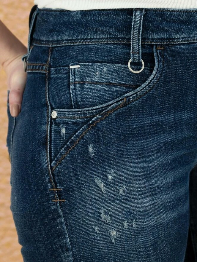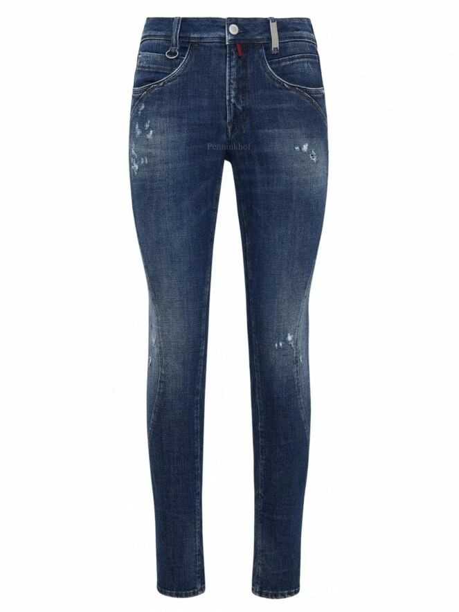 Jean dĂ©lavĂ© de la marque High, de couleur lĂ©gèrement foncĂ©e avec un traitement d’usure. Une couture dĂ©corative courbe orne les cĂ´tĂ©s du jean. Modèle Ă cinq poches. Lavage Ă 30 degrĂ©s.