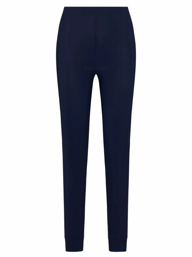 Leggings de la marque High, de couleur bleu marine. Une bande élastique équipe la taille. Une large planche est présente au bas des jambes. Lavage à 30 degrés.
