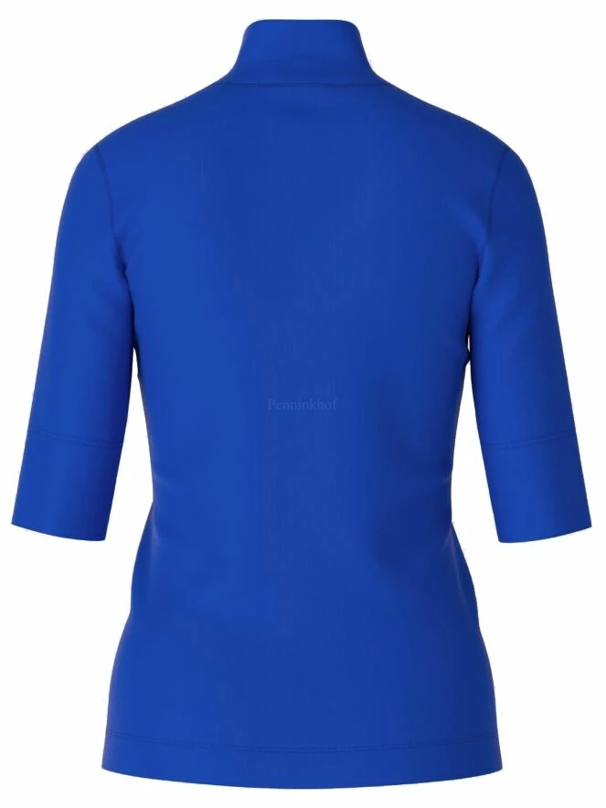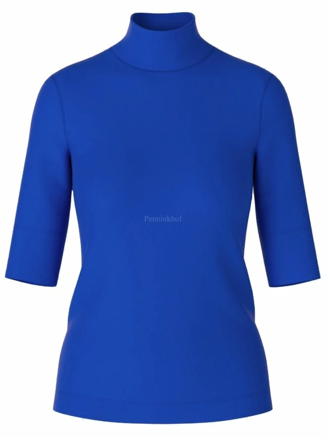 Un T-shirt de Marc Cain dans la couleur bleu cobalt. Le T – shirt a des manches courtes et un col roulé. Ce shirt peut être lavé à 30 degrés.