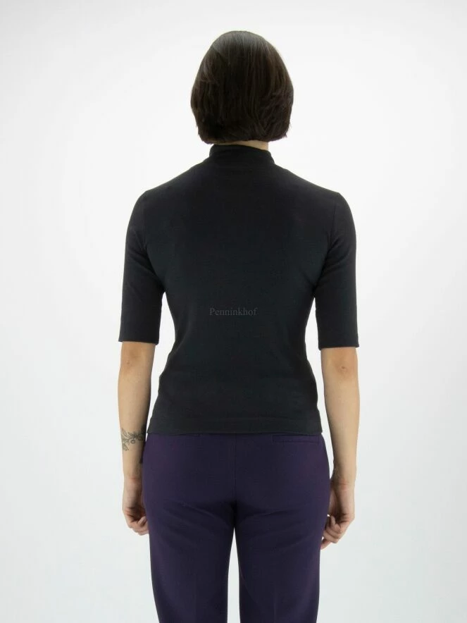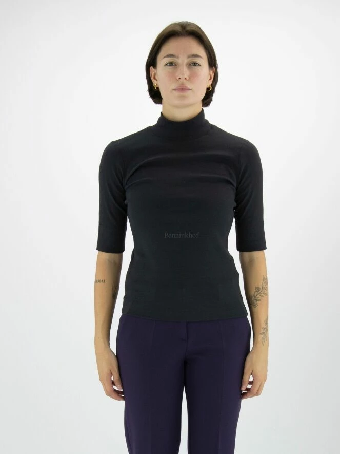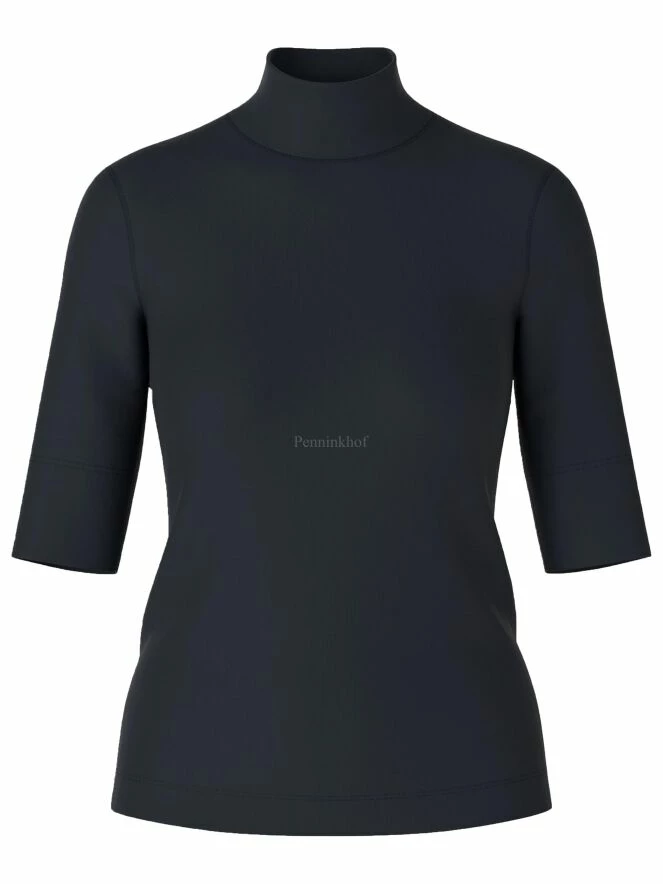 Un T-shirt de Marc Cain en bleu marine. Le shirt a des manches courtes et un col roulé. Ce T shirt peut être lavée à 30 degrés.