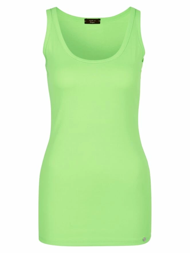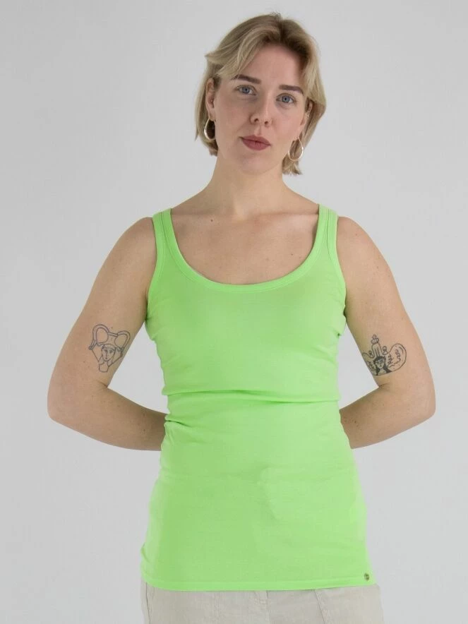 Un top de Marc Cain de couleur vert pistache. Le top a un décolleté rond spacieux, et les bretelles mesurent 3 cm de large. Ce top peut être lavé à 30 degrés.