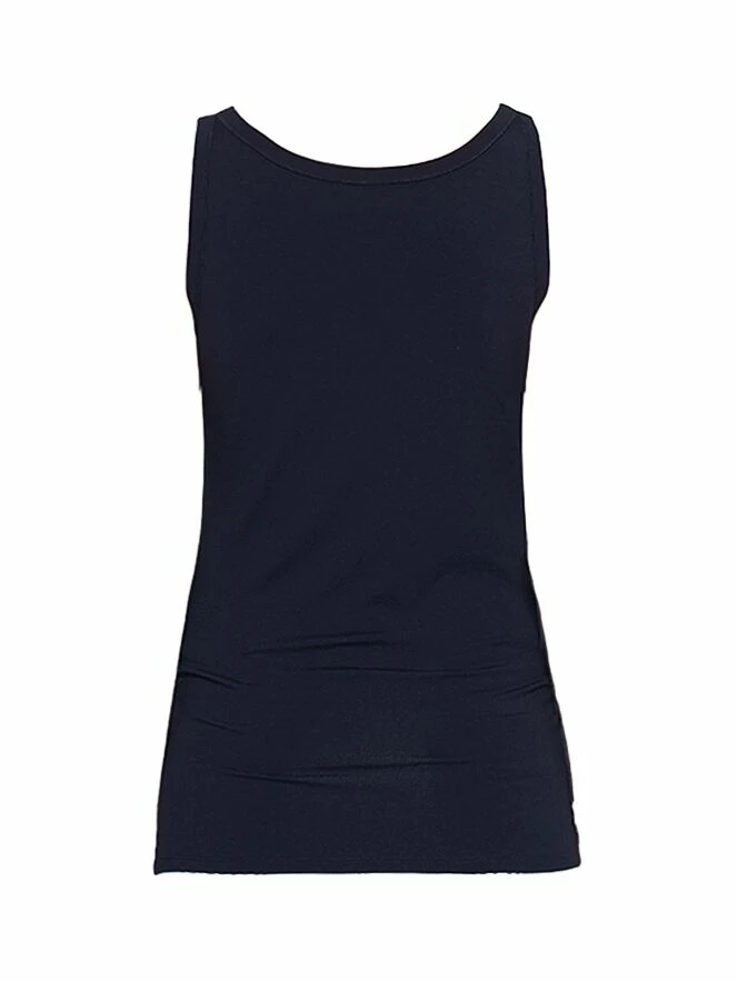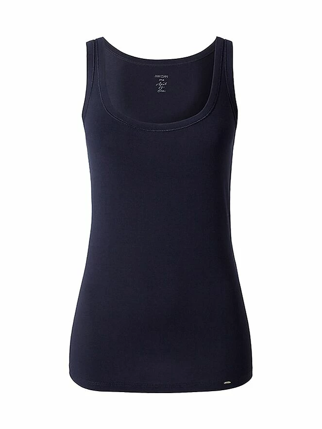 Ce top de base, modèle prêt du corps de la marque Marc Cain, bleu marine, est confectionné en viscose mélangée légèrement transparente, au toucher ultra doux. Les coutures Inside-Out ton sur ton brillantes ornent l’encolure et les emmanchures. Les bretelles ont une largeur de 3 cm. Lavage à 30 degrés.