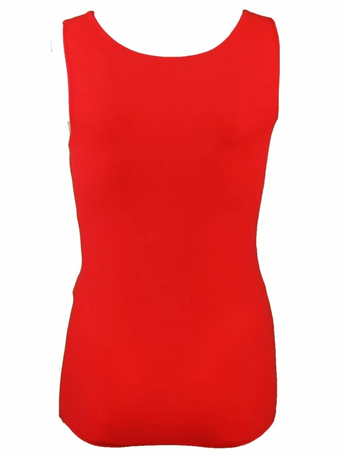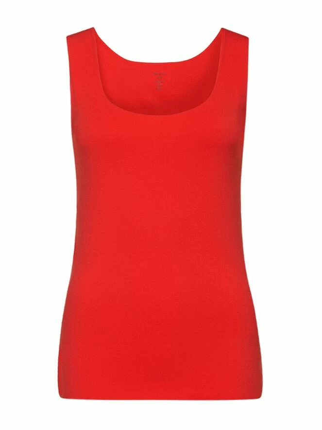Top basique, de la marque Marc Cain essentiels, de couleur rouge. Modèle sans manche avec larges bretelles de 4 cm. Son tissu très élastique lui confère un très grand confort. Lavage à 30 degrés.