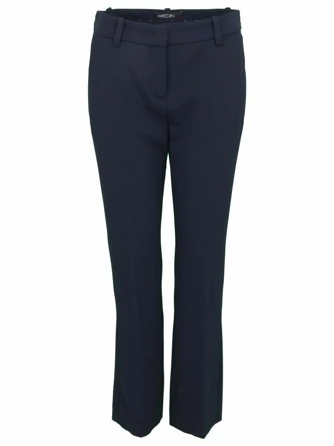 Pantalon de coupe droite, de la marque Marc Cain, de couleur bleu marine. Il est équipé de deux poches latérales. Lavage à 30 degrés.