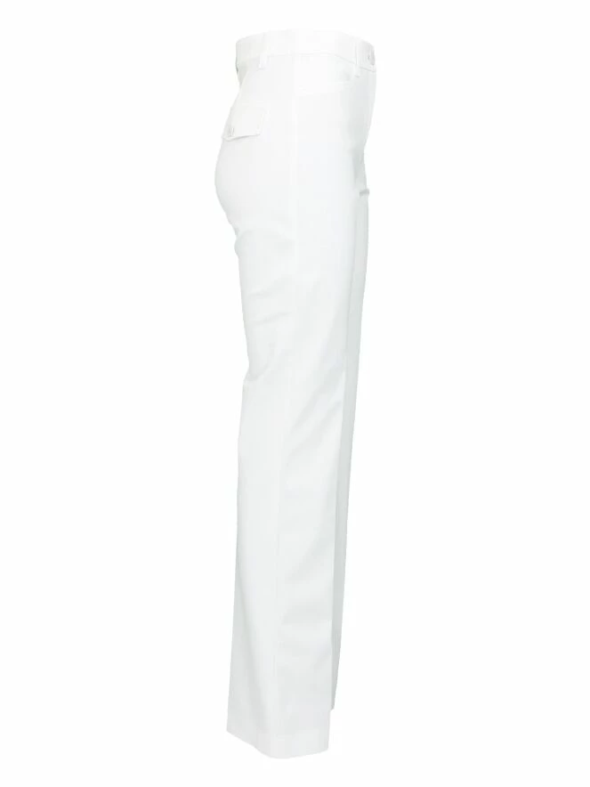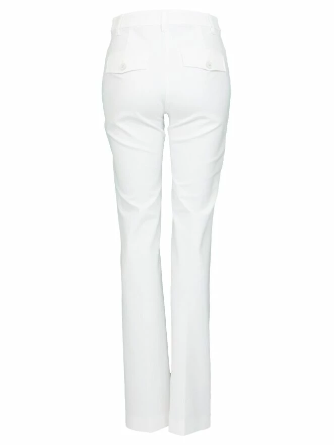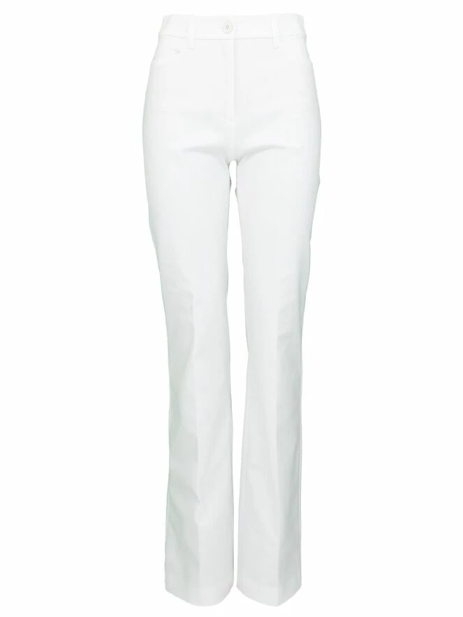 Pantalon de couleur blanche, de la marque Marc Cain. Le pantalon est Ă©quipĂ© d’une ceinture avec passants et de poches avant et arrière. Les jambes ont une coupe droite. Lavage Ă 30 degrĂ©s.