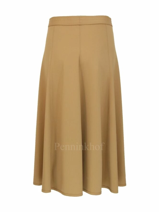 Jupe de la marque Marc Cain, de couleur cognac. Elle est équipée d’une bande élastique à la taille. Des coutures décoratives ornent l’ourlet du bas et la bande élastique à la taille. Cette jupe à la coupe en A n’est pas doublée. Lavage à 30 degrés.