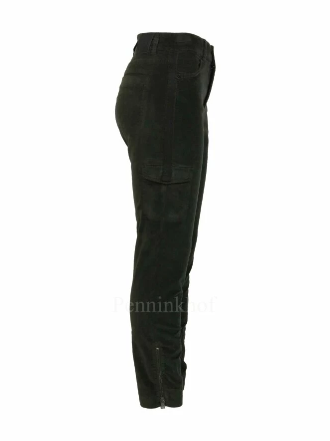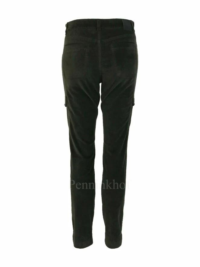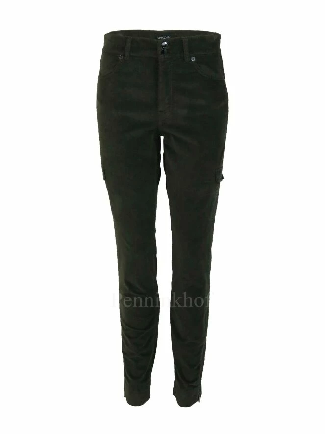 Pantalon cargo en velours de la marque Marc Cain, de couleur vert olive. Sur le cĂ´tĂ©, il est ornĂ© d’une large bande de mĂŞme tissu allant de la taille aux poches. Au bas des jambes, un zip remonte sur les cĂ´tĂ©s. Lavage Ă 30 degrĂ©s.