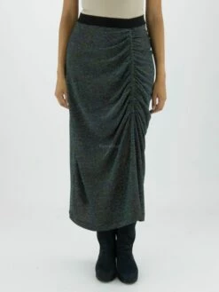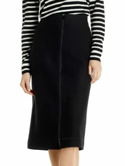 Jupe plissĂ©e de la marque Marc Cain, de couleur noire. Elle est Ă©quipĂ©e d’une bande Ă©lastique Ă la taille avec un cordon noir sous tunnel. Des plis surpiquĂ©s originaux sur le devant mettent la jupe joliment en valeur, Ă©quipĂ©e de poches latĂ©rales. Lavage Ă 30 degrĂ©s.