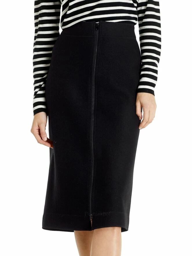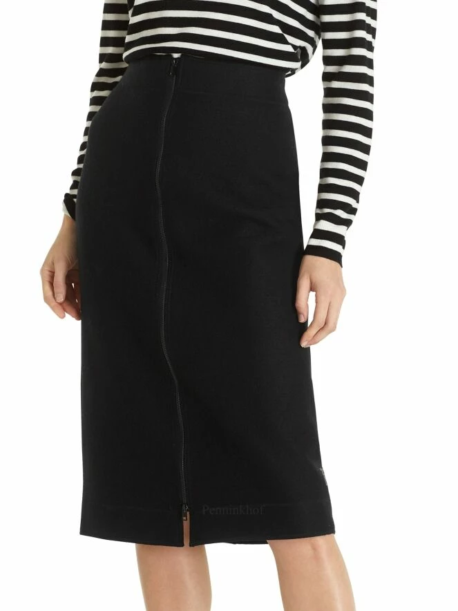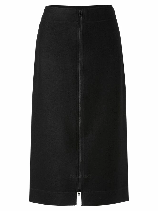 Jupe de la marque Marc Cain, en laine vierge de couleur noire. Une fermeture Eclair ferme l’avant de la jupe sur toute sa hauteur. Jupe doublée et ne doit pas être lavée.