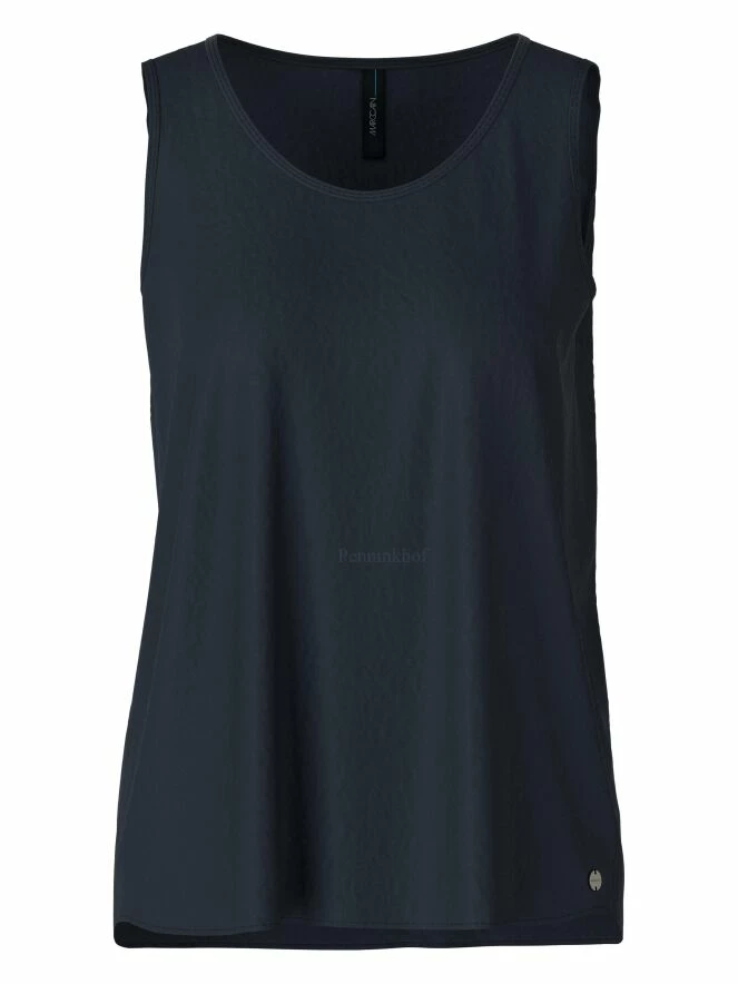 Top Marc Cain en tissu lisse et mat de couleur bleu marine. Le top a une encolure ronde et peut être lavé à 30 degrés.