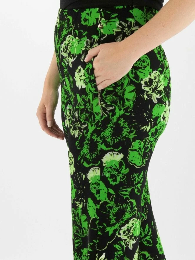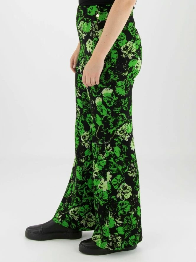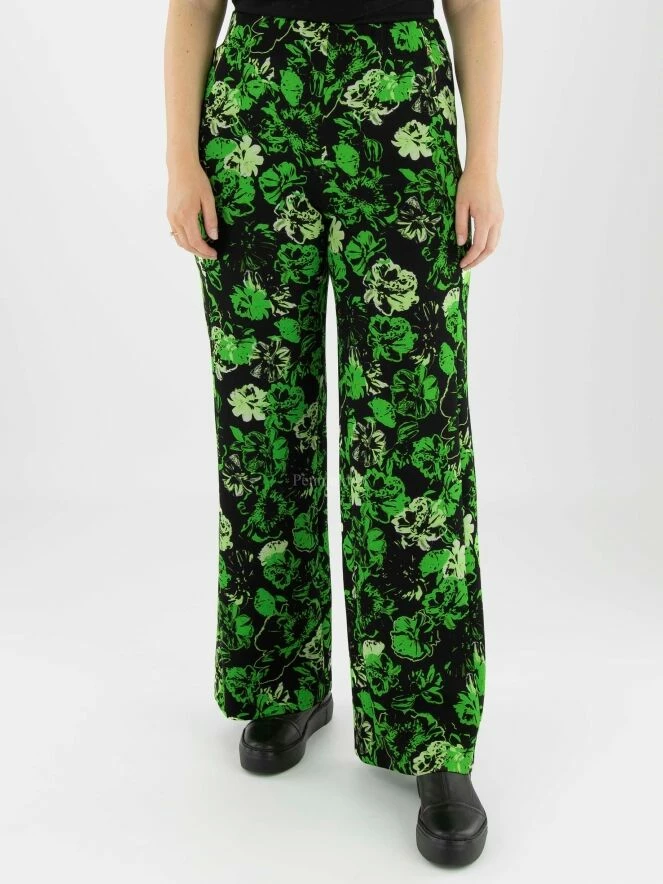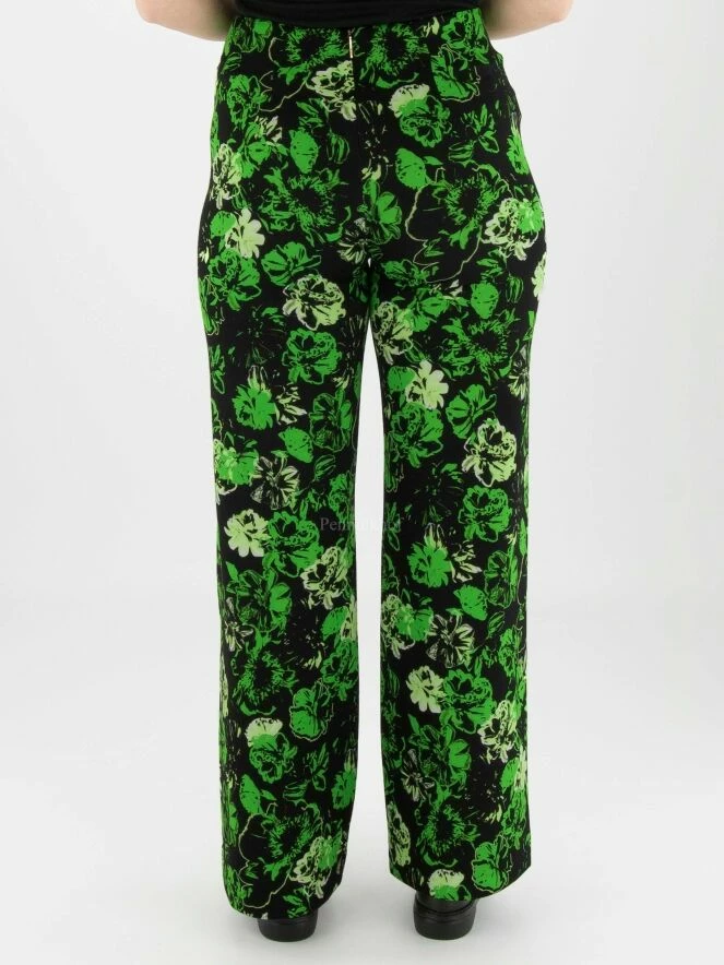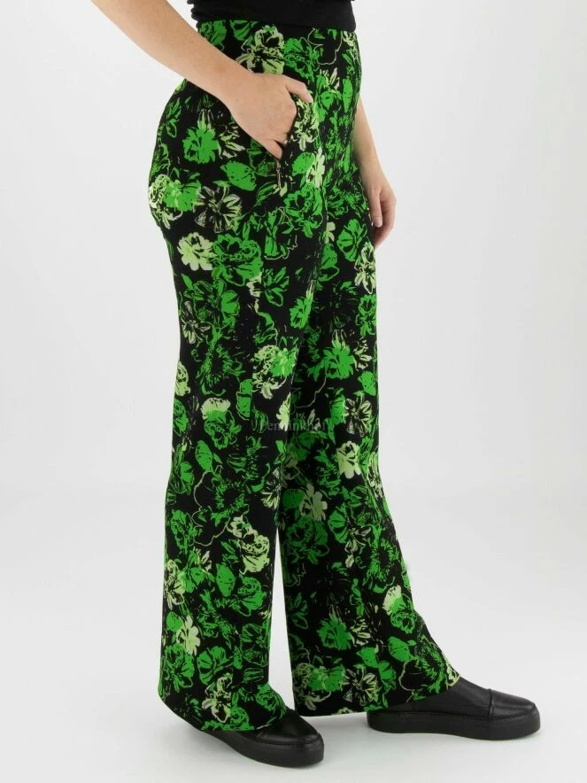 Pantalon à jambe large de Marc Cain avec un imprimé floral aux multiples nuances de vert sur fond noir. La taille est élastiquée. Les poches sont dotées d’une fermeture à glissière dissimulée. Ce pantalon peut être lavé à 30 degrés.