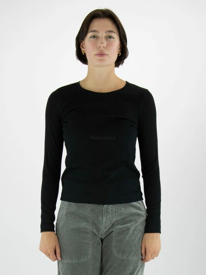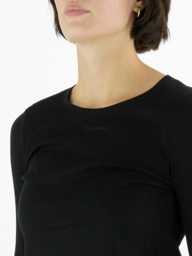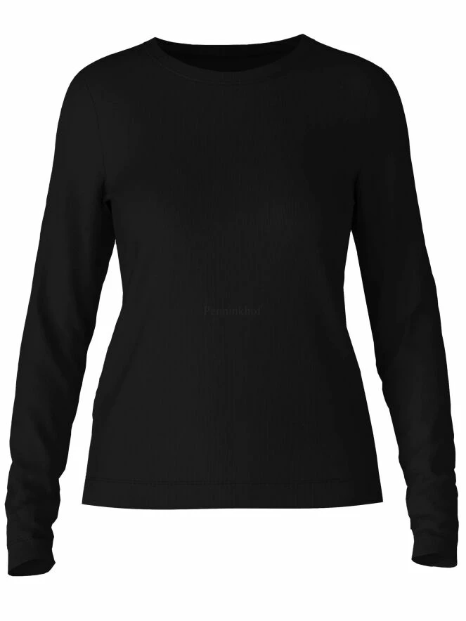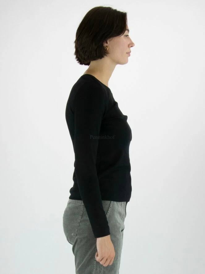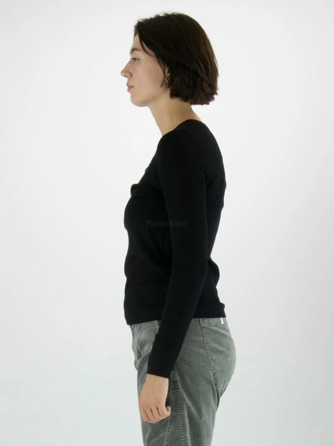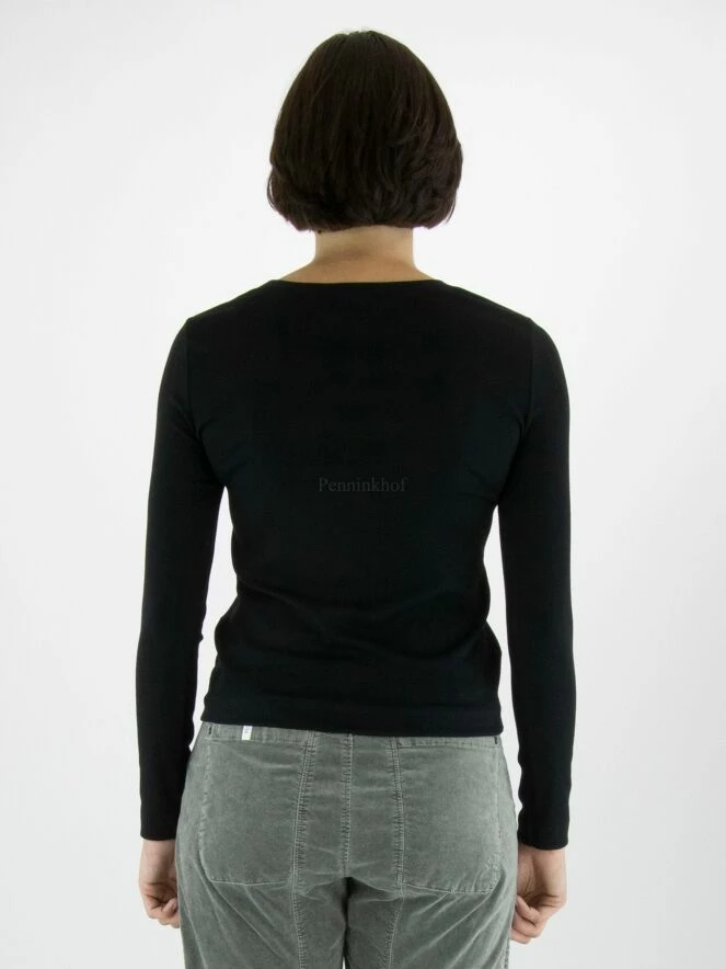 Une fine chemise cĂ´telĂ©e de Marc Cain dans la couleur noire. La T – shirt a une encolure ronde et des manches longues. Cette T shirt peut ĂŞtre lavĂ©e Ă 30 degrĂ©s.