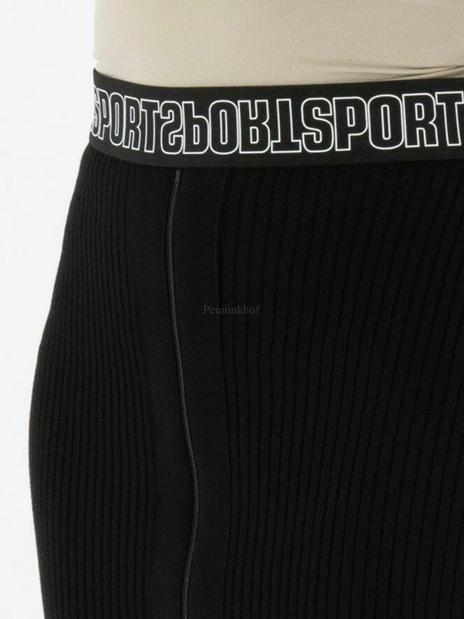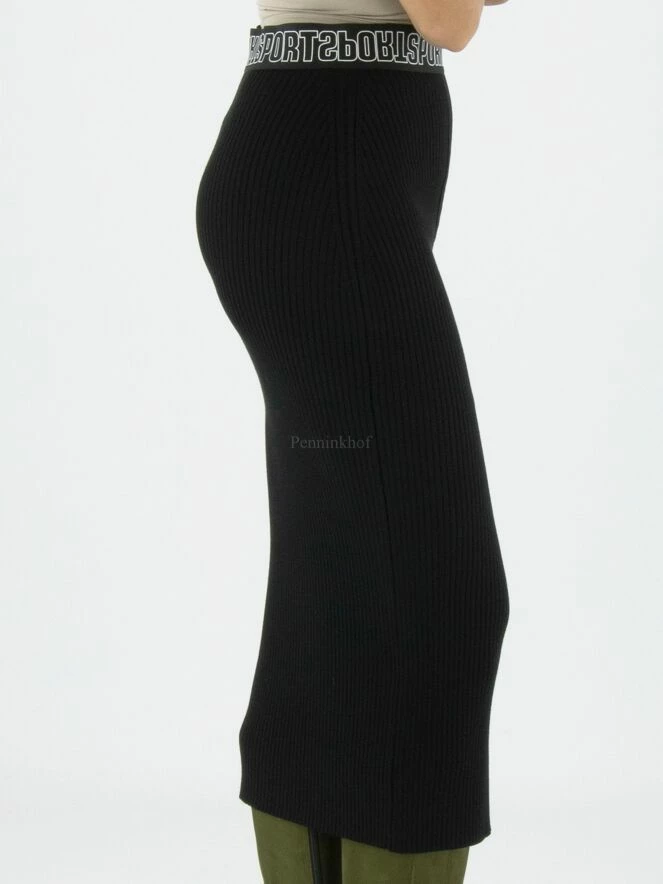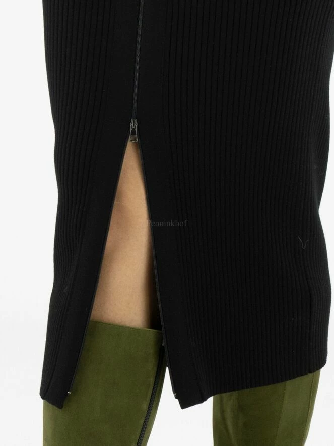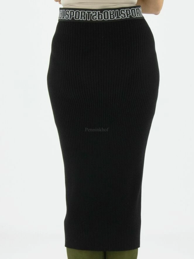 Jupe mi-longue de Marc Cain en noir. La taille est élastiquée. Le tissu est côtelé et la jupe est semi-doublée. Cette jupe peut être lavée à 30 degrés.