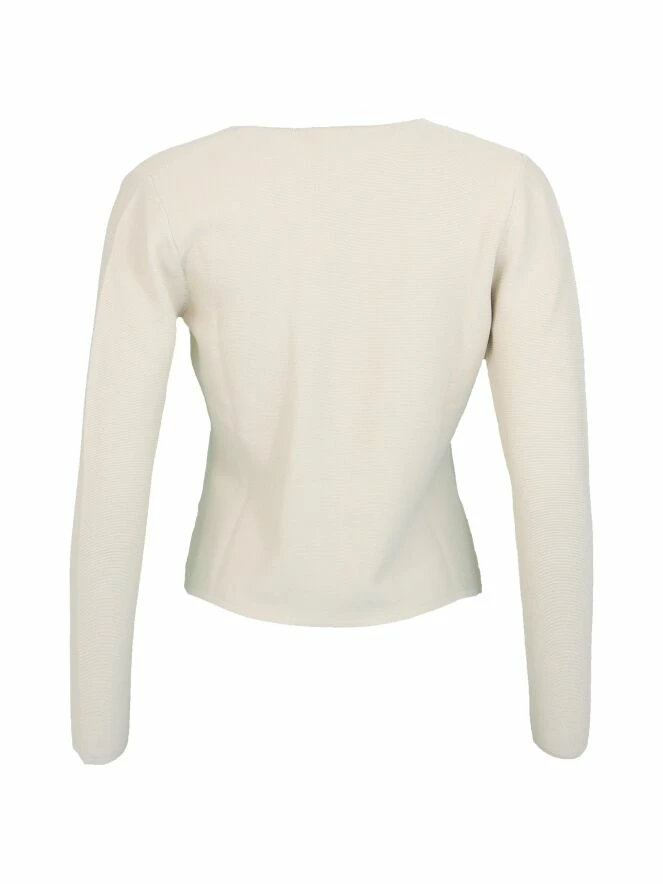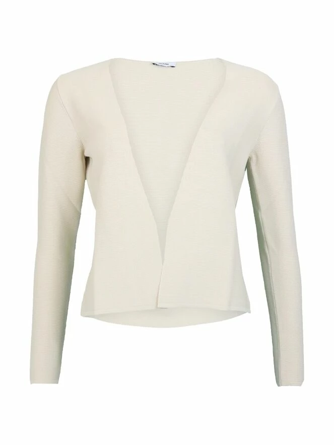 Cardigan court de la marque Riani, de couleur beige. Le gilet n’a pas de fermeture et présente des manches longues. Lavage à 30 degrés.