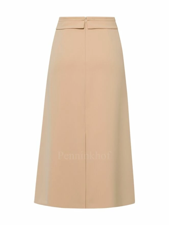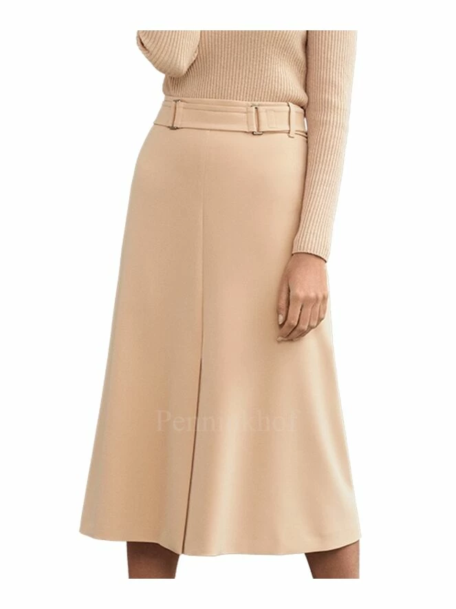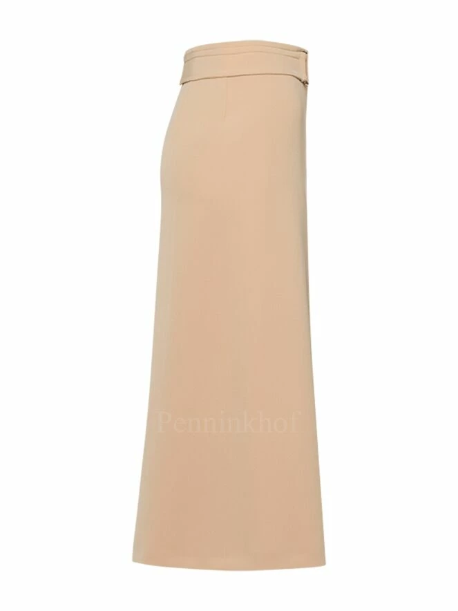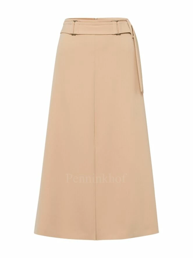 Jupe de la marque Riani de couleur sable. Sa coupe en forme de A présente une longue fente à l’avant et à l’arrière. Elle est équipée d’une large ceinture à sa taille. Lavage à la main.