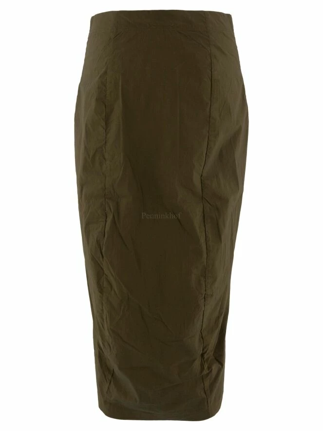 Jupe de la marque Rundholz black label de couleur vert olive. La jupe est élastiquée à la taille. La jupe est effilée et non doublée. Cette jupe peut être lavée à 30 degrés.