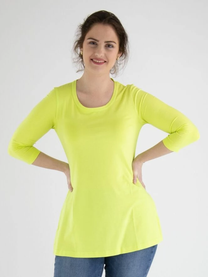 Un chemisier de Rundholz Black Label de couleur vert pistache. Le chemisier présente un col rond et des manches mi-longues. Ce chemisier peut être lavé à 30 degrés.