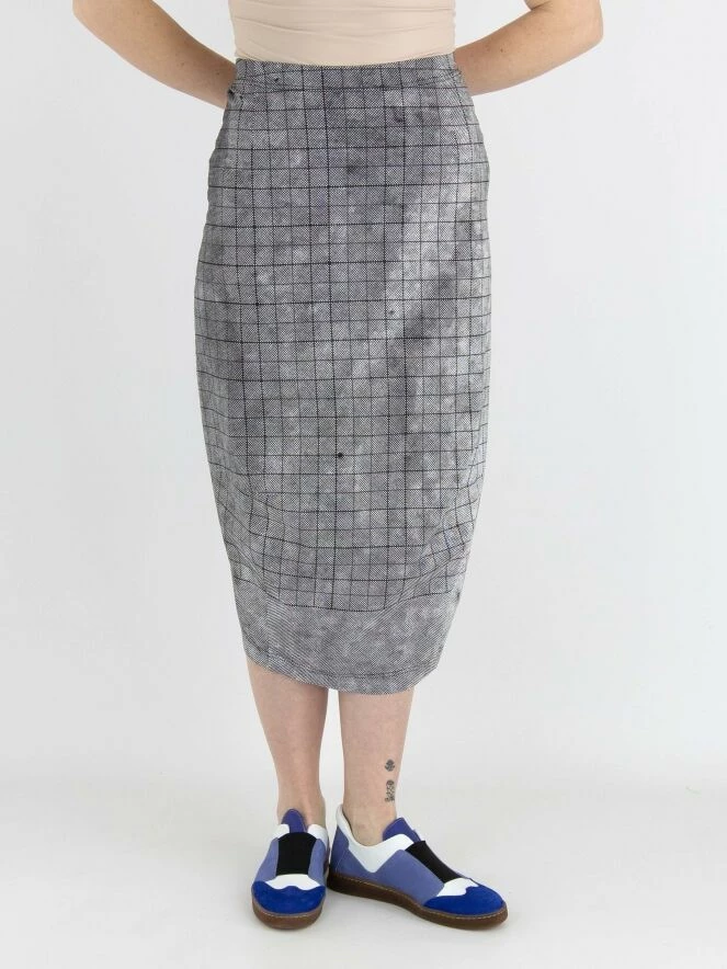 Une jupe de Rundholz Black Label avec un motif à carreaux graphique varié en noir et blanc. Il y a une bande élastique étroite à la taille. Cette jupe peut être lavée à 30 degrés.