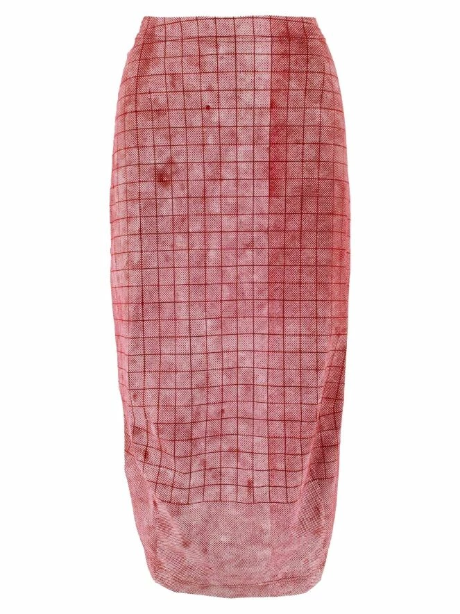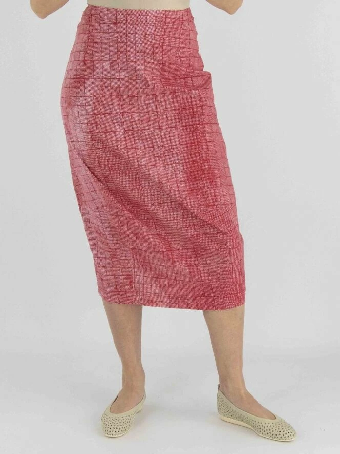 Une jupe de Rundholz Black Label avec un motif à carreaux graphique varié en rouge et blanc. Il y a une bande élastique étroite à la taille. Cette jupe peut être lavée à 30 degrés.