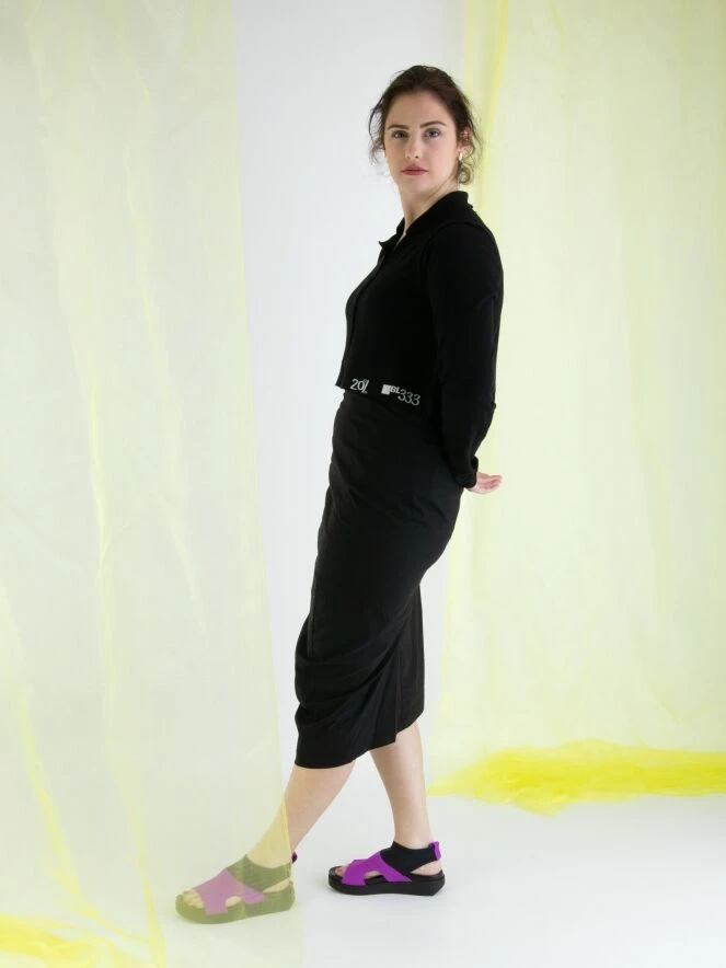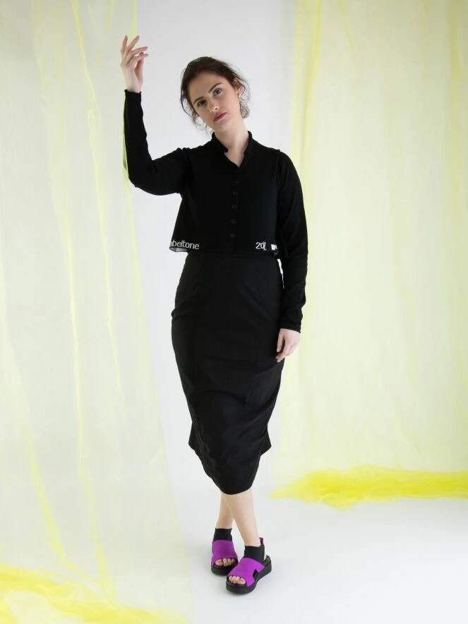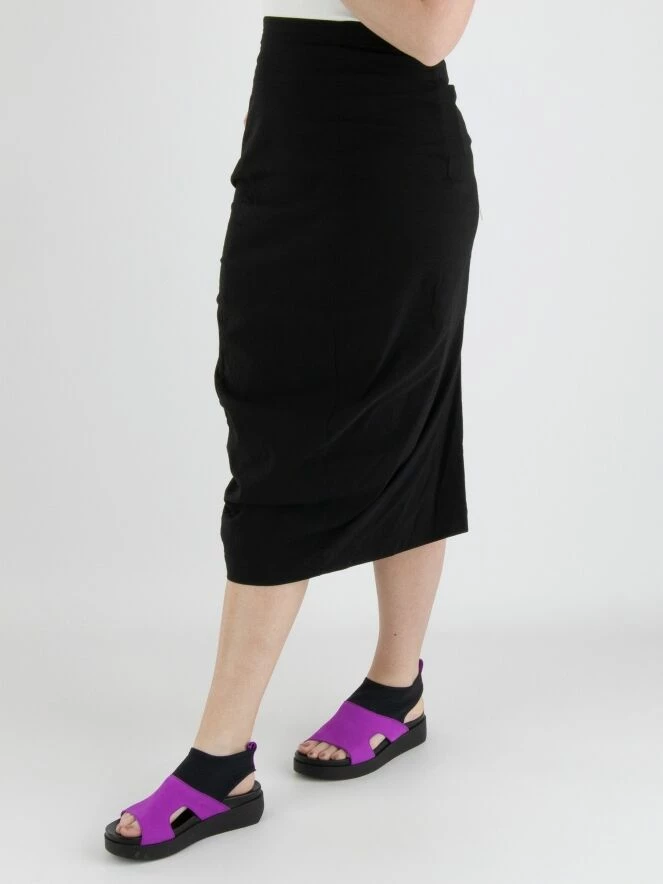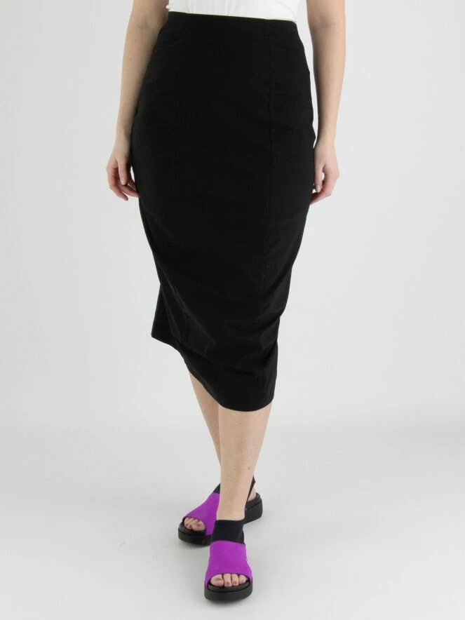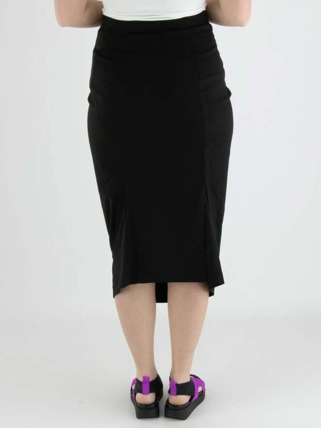 Une jupe de Rundholz Black Label en noir. La taille de la jupe est Ă©lastique. La jupe se rĂ©trĂ©cit vers le bas et n’est pas doublĂ©e. Cette jupe peut ĂŞtre lavĂ©e Ă 30 degrĂ©s.