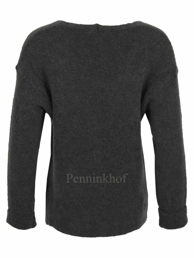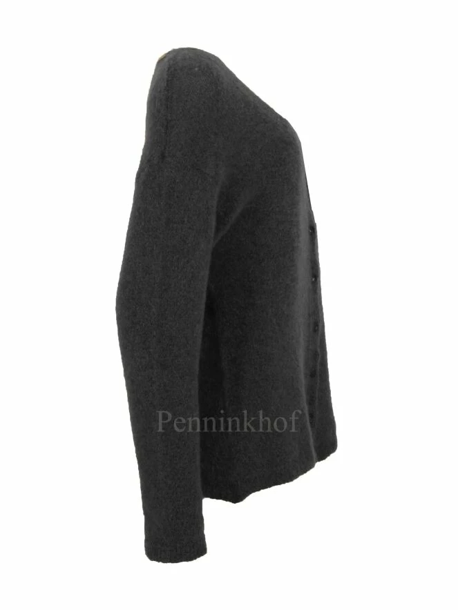 Luxueux gilet à profonde échancrure de la marque Tandem, de couleur gris foncé. Le cardigan est doté d’une fermeture à 5 boutons et de manches longues. Lavage déconseillé.